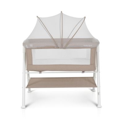 Patut Co-Sleeper Cangaroo Amo Beige 91x49x89 cm cu laterala culisanta,fixare langa patul parinteluI,inaltime reglabila in 7 pozitii,roti cu blocare,raft pentru accesorii,pozitie antireflux,saltea si plasa insecte inclusa