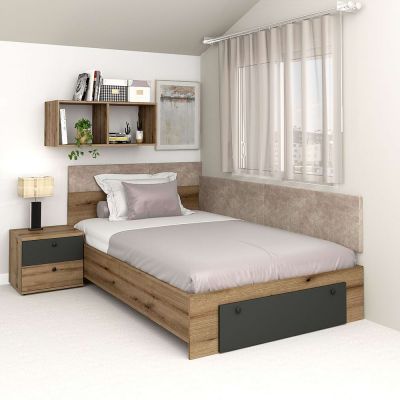 Pat AMBRO fara saltea, 160x200, sertar frontal, Oak, Antracit