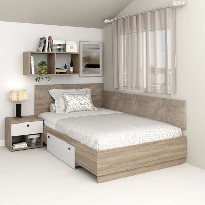 Pat colt de o persoana AMBRO fara saltea, 120x200, sertar frontal, Stejar, Alb